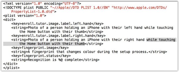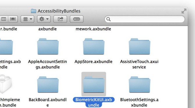Копаясь в данных iOS 7 Beta 4, энтузиасты нашли папку с файлами, отвечающими за некий Biometric Kit. Текстовая запись, связанная с папкой BiometricKitUI.axb, подписана следующим образом: