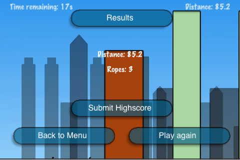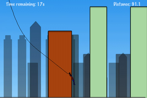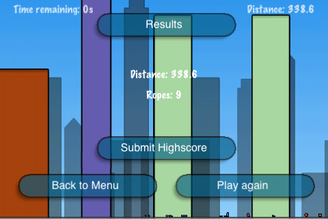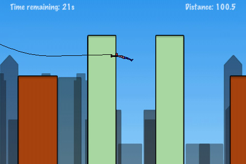 Продолжая рассматривать простейшие игры, делающие неплохие по сути для своих авторов деньги, просто невозможно обойти стороной Rope’n’Fly. Смысл ее элементарен – нужно помочь маленькому человечку пролететь как можно дальше и не разбиться. Скажу сразу – хоть и фигурирует в названии слово “веревка”, меня обмануть никто не смог. Оно даже, прошу прощения, ежу понятно, что разработчик не мог использовать “Spiderman”, однако это он и есть.