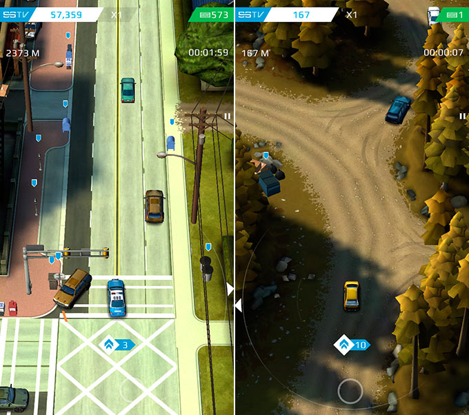 Во время заездов учитывается расстояние, которое вы преодолели, а также общее время погони. Чтобы легче расправляться с преследователями, можно выбирать бонусы перед каждым заездом. Самый первый, например, позволяет выталкивать автомобили, движущиеся параллельно, с дороги. Выглядит это довольно забавно, но совершенно не реалистично.