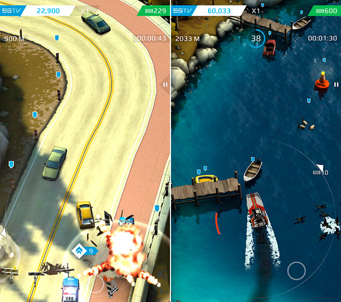 Smash Bandits действительно пытается выглядеть крайне кинематографично. Удирая от копов, придется прокладывать путь по дорогам, заполненным обыкновенными машинами. Большинство из них взрывается после малейшего контакта. Машины полиции будут покрепче и над их уничтожением уже предстоит попотеть. Все окружение, кроме отмеченного специальными значками, не разрушается.