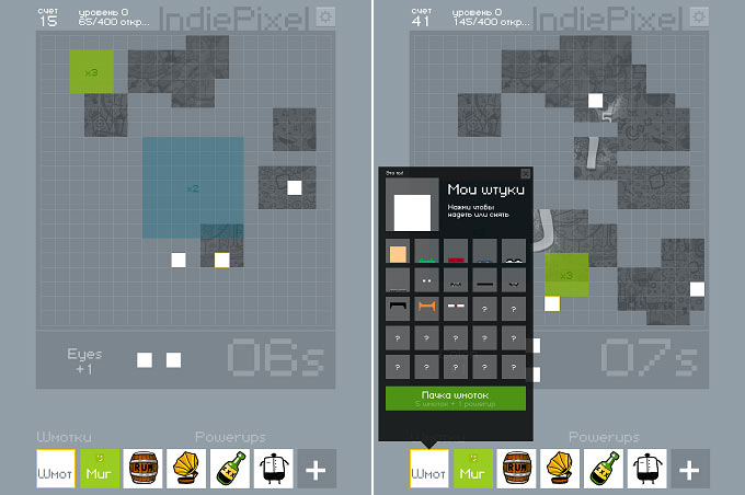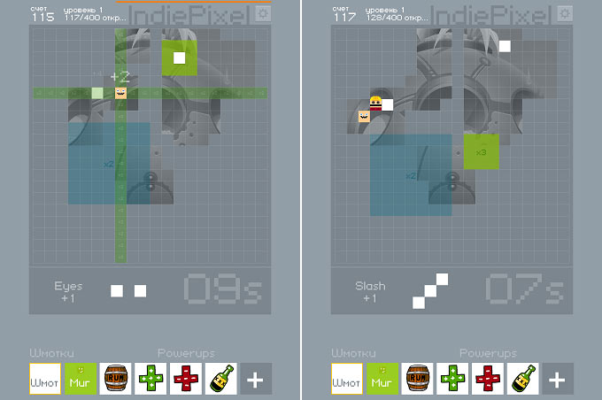 Во-первых, между игроками нет никакой связи. Единственное, что могут пиксели – подмигивать друг другу для привлечения внимания. Во-вторых, каждый игрок старается максимизировать собственный счет, образуя фигуры и препятствуя чужим построениям. Также каждый уровень предусматривает набор бонусов, которые можно использовать, получая самые неожиданные эффекты. Однако перед применением бонуса есть возможность прочитать, что он даст.