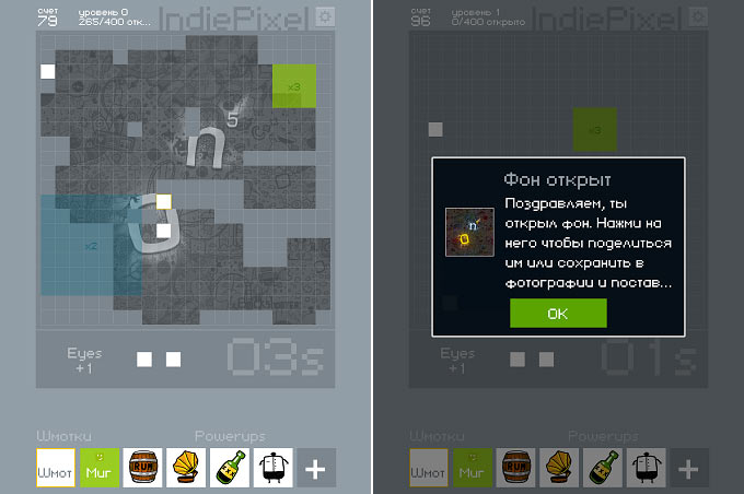Когда несколько пикселей образуют фигуру, каждый игрок открывает свой собственный фрагмент фонового изображения игрового поля. Когда будет открыто приблизительно 70%-80% рисунка, уровень завершится, а получившееся изображение можно будет сохранить в качестве обоев или поделиться им в социальных сетях. Также на игровом поле присутствуют постоянно перемещающиеся зоны, которые дают дополнительные очки, если фигура будет собрана в их пределах.