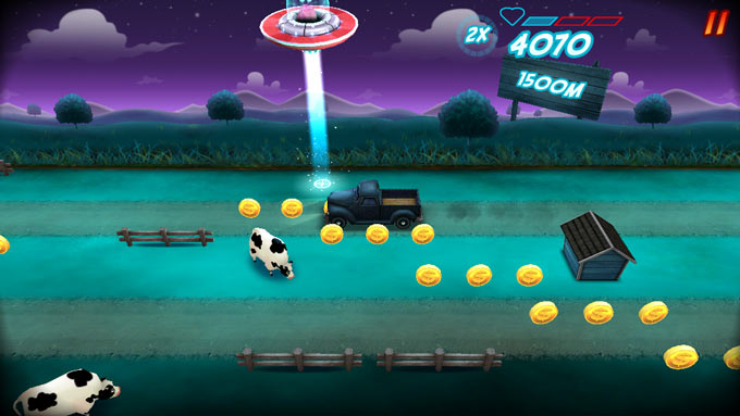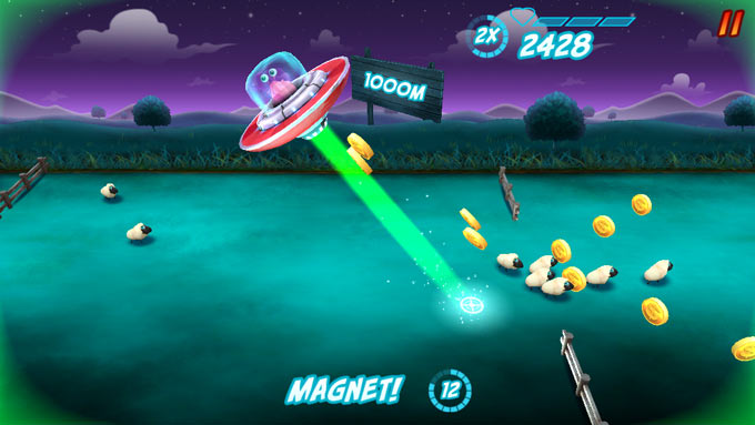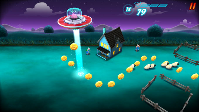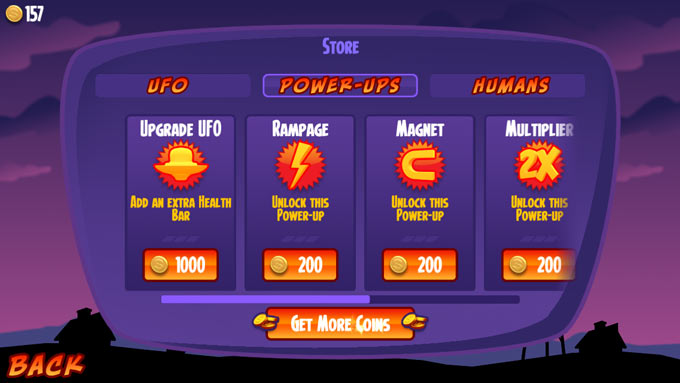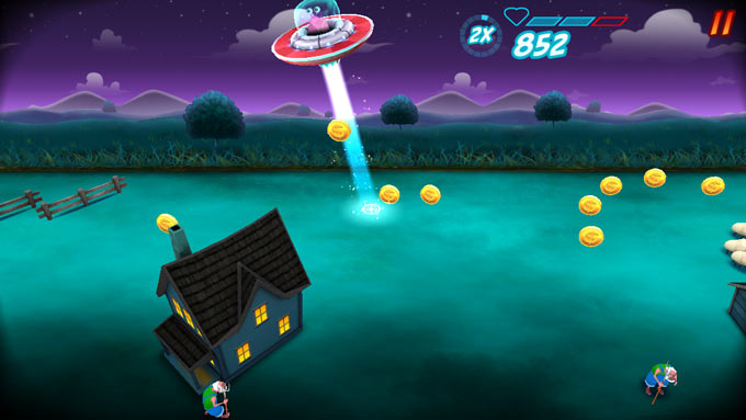 Разумеется, есть в игре и бонусы. Для их покупки лучом захватываются монеты. Среди бонусов присутствуют как стандартные магниты, так и, например, увеличение запаса здоровья для летающей тарелки. Также в магазине можно приобретать другие модели НЛО или новых местных жителей, приносящих больше очков за похищение.