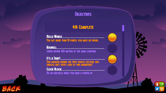 Захватывающий луч с легкостью переносит на корабль пришельцев как людей, так и крупных животных. А вот с неживыми объектами все гораздо сложнее. В правом верхнем углу присутствует индикатор здоровья летающей тарелки. Каждый случайно захваченный кусок забора, здания или автомобиль ведет к уменьшению здоровья или окончанию игры. А учитывая все возрастающую частоту неживых объектов на пути следования корабля пришельцев, убирать луч становится все сложнее.