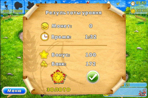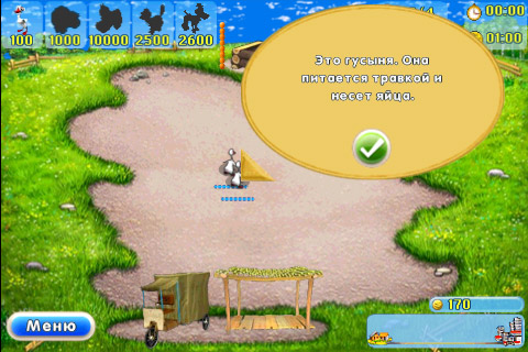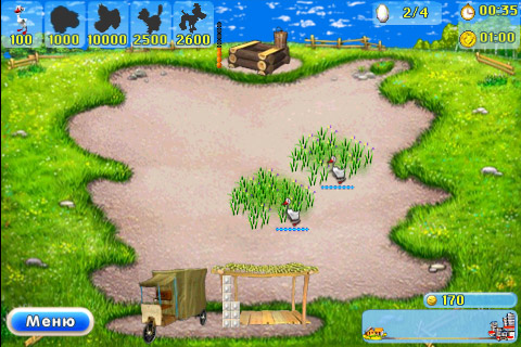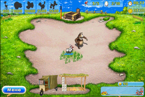Farm Frenzy (англоязычное название приложения) относится к тому типу игр, который не терпит расслабленного стиля. Здесь, как и в настоящем хозяйстве, необходимо постоянно что-то делать. Суетиться, подносить своим без сомнения любимым животным воды, растить им травку, которую они, в свою очередь, уничтожают со скоростью света и с превеликим удовольствием. Потом снова наполнять корыто водой, потом снова растить траву. И так до бесконечности. Кроме того, существует постоянная угроза нападения страшного медведя, который топчет ваши луга и нещадно мочит животных. Его нужно упаковывать в клетку и увозить на рынок.