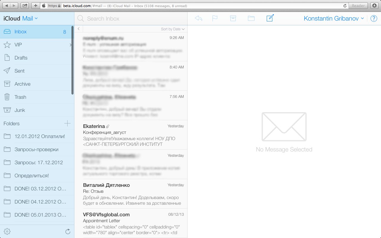 Новый дизайн у меня вызвал намного больше позитивных эмоций, чем первая бета-версия iOS 7. За почти два месяца тестирования новой прошивки глаза и руки привыкли к новому дизайну и старый мне уже кажется прошлым веком, я не хочу возвращаться на iOS 6. Благодаря новому шрифту, светлому и не загруженными графическими элементами интерфейсу сайт iCloud.com теперь кажется еще более удобным, чем раньше.