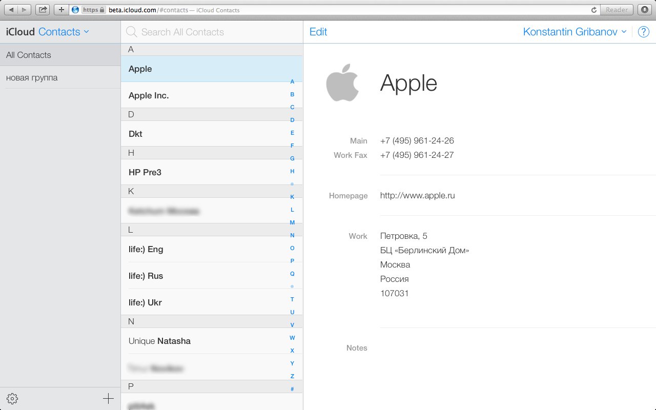 Календарь — калька с Calendar.app в iOS 7. Кроме категорий календаря, которые вы создали ранее, все меню не переведено на русский язык. Бета-версия сайта iCloud на данный момент доступна только с английской локализацией.