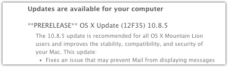 Apple очень любит понедельники. Как правило, именно в этот день компания выпускает новые версии прошивок и операционных систем. Очень вероятно, что сегодня выйдет финальная, общедоступная версия OS X 10.8.5 для Mac. Эту сборку несколько часов назад начали получать партнёры и авторизованные реселлеры. А значит, очень скоро состоится и полноценный релиз.