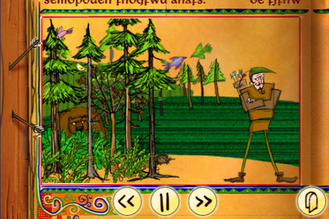 Речь далее пойдет об относительно новом виде интерактивных развлечений. Видео книга, как я себе позволяю называть приложения Sleeping Beauty и Robin Hood не просто рассказывает, как ее аудио-коллега, но еще и показывает. Перед глазами мелькают цветастые и очень забавно нарисованные картинки, а голос за кадром повествует о нелегкой истории главных персонажей. Весьма неплохая выдумка, развивающая зрение и чуть ослабляющая в итоге воображение. Но в любом случае подобный вид развлечений имеет право на жизнь.