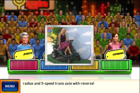 По ходу игры нам предстоит угадывать цену тех или иных продуктов. Одни более массовы, другие – менее. Скажу сразу – не зная реального американского потребительского рынка угадать что-либо очень сложно. Да и тем более обидно становится от того, что необходимо предположить не ближайшую цену, а ту, что является чуть меньше реальной. То есть, когда кресло, к примеру, стоит $980, вы называете $1000, а один из оппонентов $720, выигрывает именно оппонент. Странно и как-то неправильно.