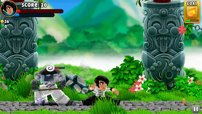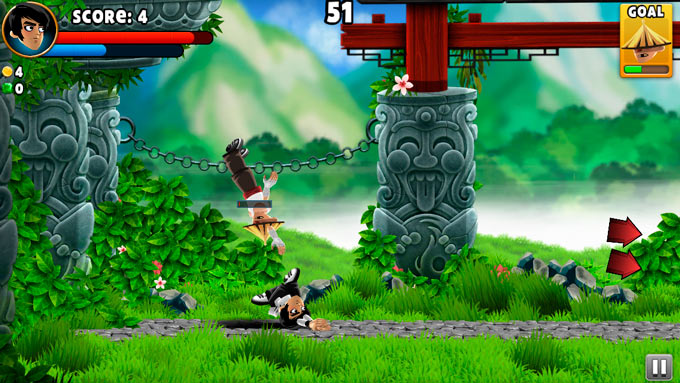 Вверху неизменно уменьшается время. Если оно достигнет нуля, то игра закончится. Чтобы этого не произошло, необходимо выполнять различные специальные приемы. Делать их несложно, достаточно разнообразить монотонные нажатия на экран еще какими-нибудь движениями. Также в процессе игры будут появляться горшочки с монетами и ящики со здоровьем. Внутри ящиков, кстати, находятся фрукты, которые и восполняют потерянные очки здоровья. После уничтожения определенного количества врагов, в дело вступает босс. Но победа над ним не означает конец уровня. Каждую локацию в Dragon Finga можно проходить бесконечно долго, устанавливая новый рекорд.