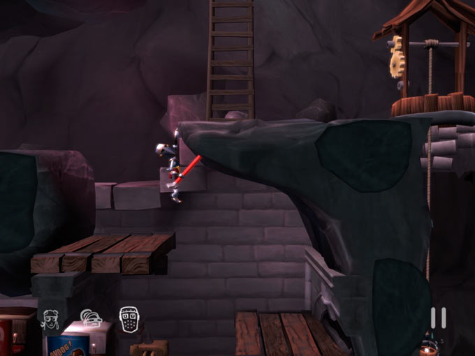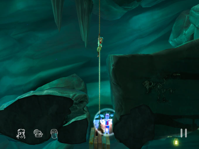 Переключение между персонажами осуществляется нажатием на соответствующие иконки внизу экрана. Если проделать это с активным персонажем, то будет использовано особое умение. Само управление довольно необычно и не всегда удобно. Персонажи двигаются в пределах экрана в указанную точку. Для прыжка используется свайп. Можно просто удерживать палец на экране и герой будет двигаться в выбранном направлении. К счастью, погибнуть в The Cave нельзя, иначе нареканий на управление было бы куда больше.