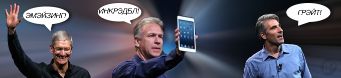 Как и летом на WWDC 2013, в этот вторник Тим Кук, Фил Шиллер и Крэйг Федериги произнесли такое количество прилагательных, характеризующих новинки, что сосчитать их с первого раза просто невозможно. Правда, хорошо чувствуется, что над текстами руководителей хорошо поработали и решили их разнообразить. Вместо многочисленных “incredible” («невероятный») появились дополнительные “tremendous” («потрясающий»), “astonishing” («изумительный») и другие. Все их слова уместились в один небольшой ролик, сосчитаете? [CultOfMac]