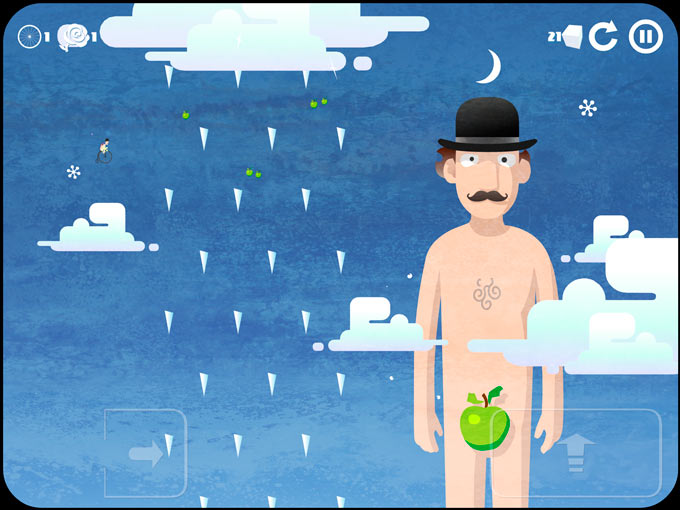 Icycle: On Thin Ice – это пламенный «привет» всем аркадам в App Store и не только, построенным на использовании физики. Приключения абсолютно голого мужчины на велосипеде на фоне прекрасных по своей красоте изображений. Icycle настолько противоречива, что просто так забросить ее, не дойдя до конца истории, мешает взбунтовавшееся чувство любопытства.