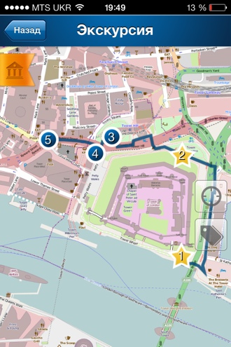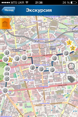 Для того, чтобы гид запел вам в уши своим приятным баритоном, нужно нажать play на карте с прорисованным маршрутом, на котором уже обозначены все остановки и достопримечательности, встречающиеся вам на пути.