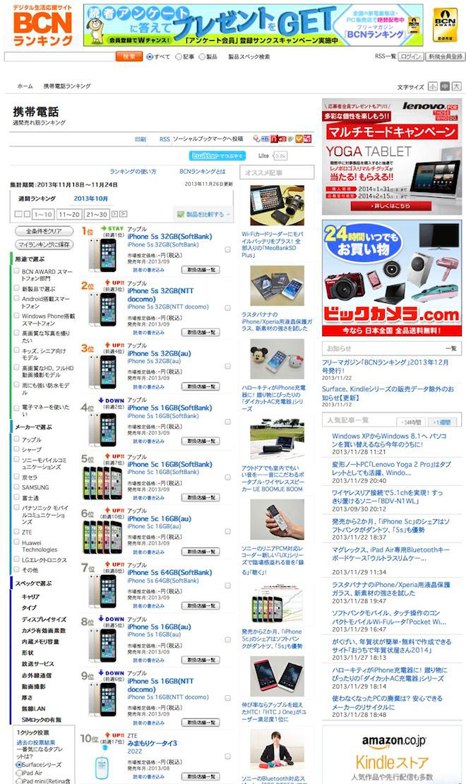 iPhone 5c занял пятую и шестую позиции в рейтинге продаж Softbank, а на седьмом месте оказался 64-гигабайтный iPhone 5s, обосновавшийся в рейтинге NTT DoCoMo.