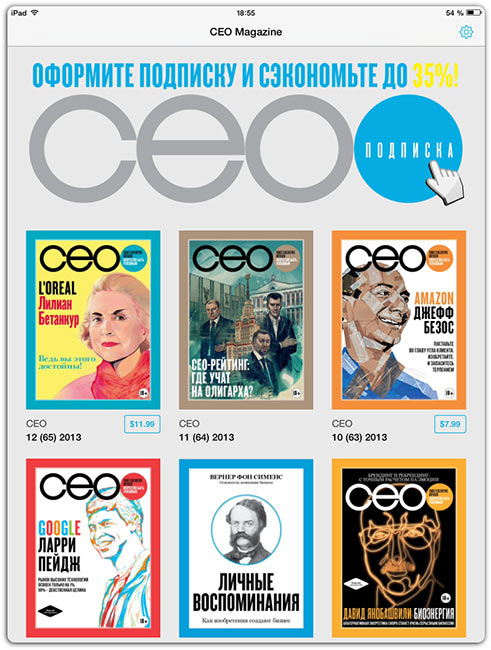Для тех же, кто с журналом не знаком, теперь есть возможность испытать издание без лишних затрат. Во-первых, впервые в CEO появился ознакомительный номер (№9–2013), который можно скачать бесплатно. Во-вторых, об издании можно почитать в предыдущих тематических материалах (раз и два), где по традиции описываются свежие номера.