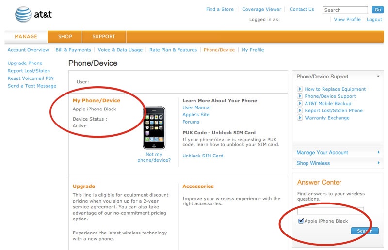 Если вы официальный пользователь AT&T, то при входе в ваш личный кабинет сможете наблюдать и даже выбрать “Apple iPhone Black” в списке моделей.