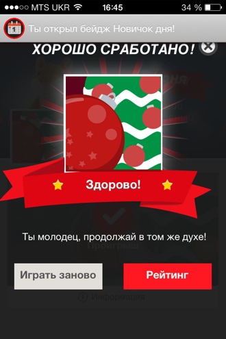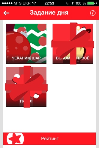 За выполненное лучше всех задание недели Дед Мороз награждает хипстерской фотокамерой Fujifilm Instax. Но получить её может не каждый, а лишь тот, кто преодолев семидневный рубеж из игровых лабиринтов, пробьётся на первое место рейтинга. Да, всё относительно просто, кроме самих заданий, которые заставляют переживать и трясти телефон от нервного напряжения.