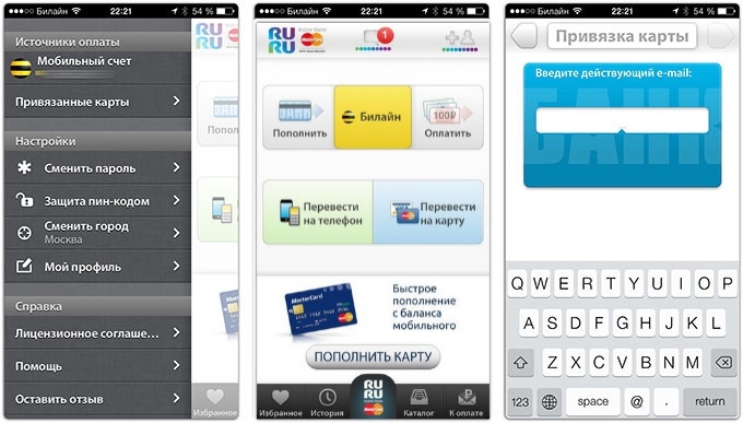 Для начала я скачала приложение RURU Wallet with MasterCard из App Store [скачать] и привязала две свои самые «рабочие» кредитные карты (одну – VISA, другую – MasterCard) для совершения платежей, не бегая от одного банкомата к другому с целью снять наличность, чтобы отнести её же в другой банк для погашения какого-то родственного кредита. Уфф. Половина дела сделана.