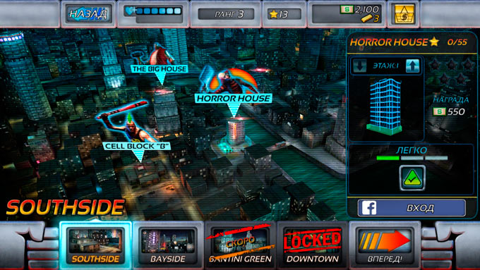 Разработчики усердно создавали иллюзия свободного игрового процесса. К нашим услугам карта города, на которой отмечены места, куда можно отправиться с карательной операцией. При этом зачистка одной локации растягивается на несколько уровней, между которыми можно свободно отправиться в другое место. Делать это придется не только в поисках разнообразия, но и ради того, чтобы улучшить характеристики героя, потому что сложность в Fightback растет очень быстро.