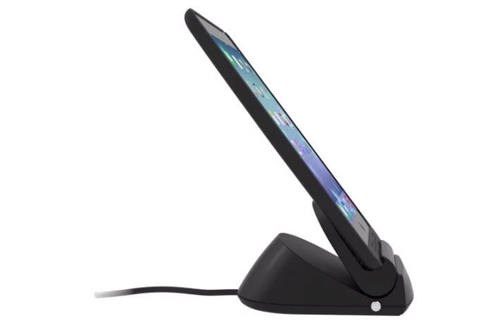 Сама подставка позволяет изменять угол расположения планшета в трех позициях. Таким образом, установив мобильное устройство на зарядку можно одинаково комфортно общаться в видеочате или вводить текст при помощи экранной клавиатуры. Чтобы не допустить случайного падения планшета, в подставку и чехол встроены магниты.
