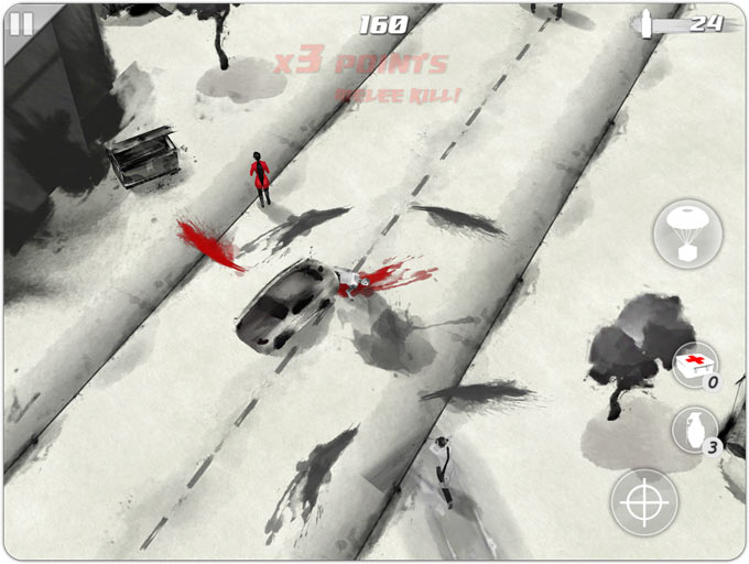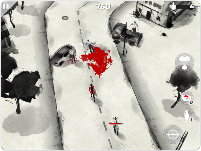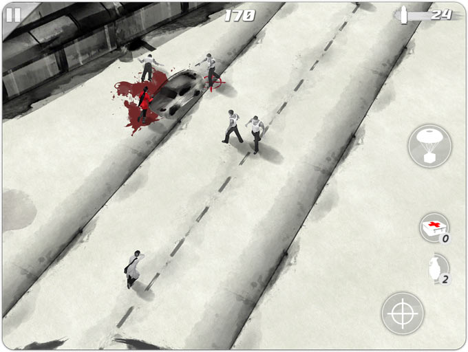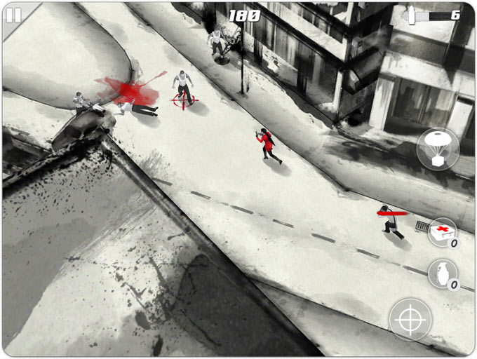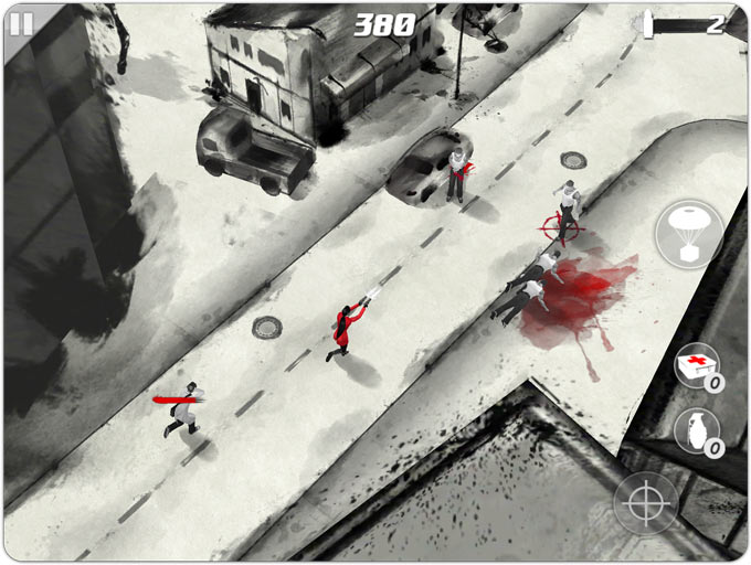 Движутся главная героиня и ее подзащитный практически самостоятельно и постоянно. Точнее говоря, камера закреплена над персоной, которую необходимо защитить. А мы уже можем свободно перемещаться в рамках экрана. Для этого служит стандартный виртуальный стик. В правой части экрана расположилась кнопка ведения огня и несколько других клавиш. Прицеливается героиня самостоятельно, а мы лишь жмем на курок. При этом важно следить за количеством патронов в обойме, чтобы не попасть под вражеский огонь с пустым магазином. Для нашего подзащитного это чревато.