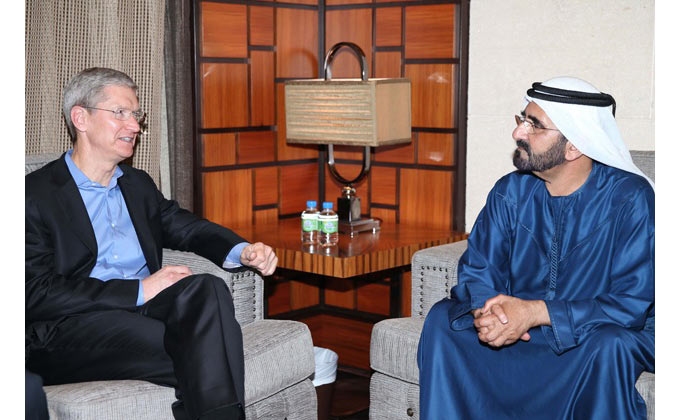 Затем Кук провел встречу с премьер-министром ОАЭ Шейхом Мохаммедом. В ходе беседы обсуждались вопросы развития IT-сектора в стране, а также его роль в образовании. Кроме того, по неофициальным данным, Тим Кук посетил Объединенные Арабские Эмираты, чтобы обсудить вопрос открытия в стране фирменного магазина Apple, а также для контроля работы местной сети, которая занимается продажей устройств компании. [MacRumors]
