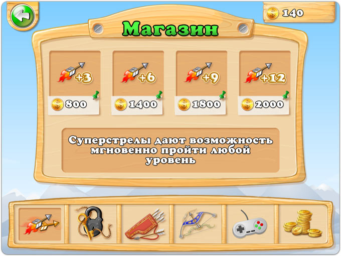 Еще одним нововведением World of Gibbets являются монеты. Они даются в награду за прохождение уровней, а также могут собираться в процессе игры. Однако зачастую на монету придется потратить драгоценную стрелу или произвести совсем уж филигранный выстрел и убить одним выстрелом двух зайцев. Так или иначе, но монеты позволяют облегчить прохождение покупкой различных бонусов. Стоят они недешево, но и полезность их высока.