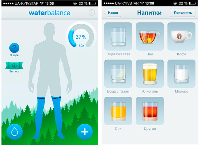 Приложение Waterbalance предназначено для того, чтобы проконтролировать как много вы выпили воды и действительно ли выпитые вами напитки благоприятно повлияют на водный баланс вашего организма.