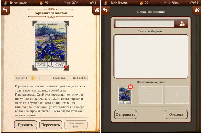 При желании марку можно продать или переслать другу, воспользовавшись сервисом внутренней почты. Учитывайте то, что марка существует в вашем альбоме в единственном экземпляре и после отправки она пропадет из коллекции.