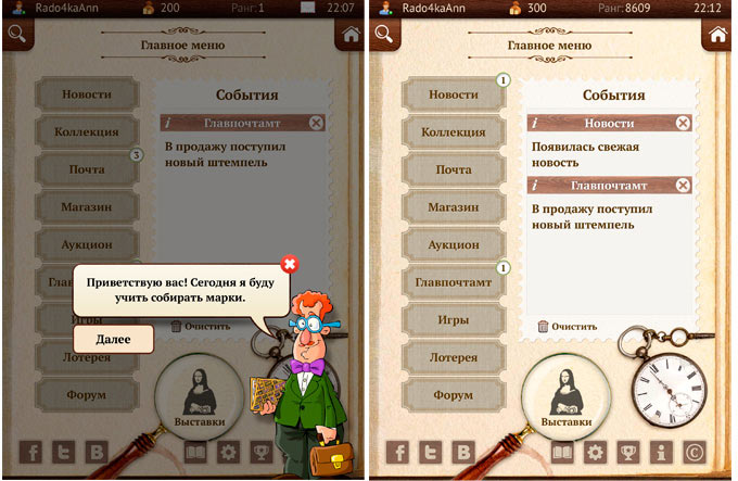 Играю в Коллекционера с первой версии, появившейся на Andreйке. Количество серий постепенно дополняется, неполадки устраняются. Есть форум для общения. Ежедневный заход даёт 100 монет, можно приобрести пакетик с пятью марками. Игры доступны каждые три часа, при успешном прохождении дарится марка и начисляются монеты.