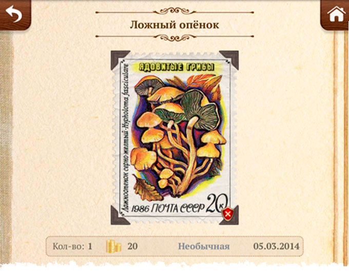 Для каждой почтовой марки доступно подробное описание: история происхождения, временные рамки использования, подробное описание изображенного растения, животного или биография выдающейся личности. Тут же указана и ее цена на “внутреннем рынке” игры “Коллекционер”.