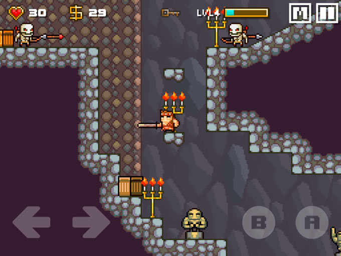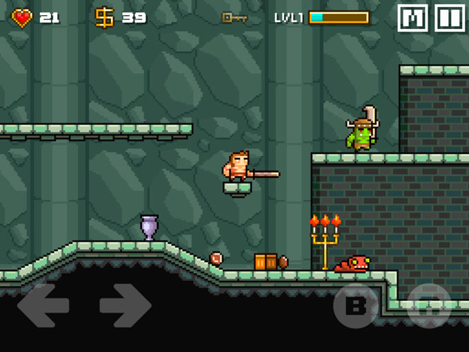 Сами локации не отличаются особой оригинальностью. Есть точка входа и точка выхода. Выход представлен порталом, а чтобы его активировать понадобится ключ, который запрятан где-то на уровне. Вот, собственно и вся задача. Крошим монстров мечом, прыгаем по платформам, избегая ловушек и все это ради ключа и прохождения дальше. Персонаж имеет крайне ограниченный запас здоровья, а также шкалу опыта.