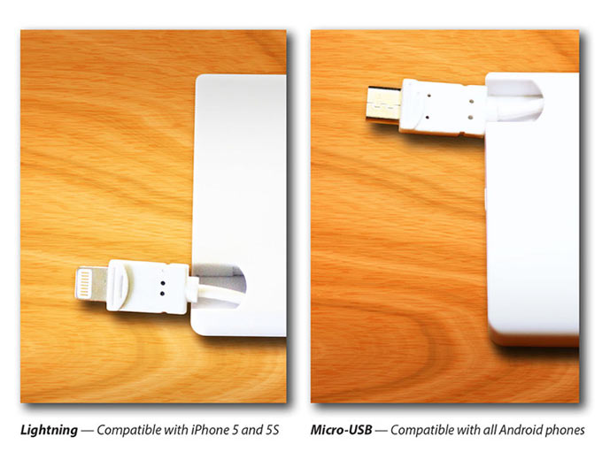 Второй важный момент — это наличие встроенного кабеля Lightning. То есть не придется с собой таскать лишний клубок проводов. Также готовится и модель с разъемом micro-USB для Android-смартфонов.