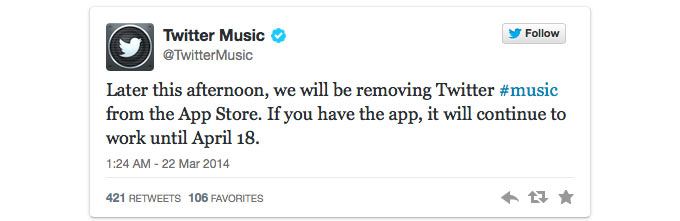 В минувшую пятницу руководство Twitter объявило о закрытии сервиса в апреле, а спустя несколько часов сделало фирменное приложение #music недоступным для загрузки в App Store. Справедливости ради следует отметить, что приложение так и не дебютировало в российском сегменте магазина приложений, а сам Twitter #music оказался совершенно провальным, хотя и довольно любопытным проектом.
