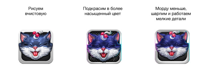 Правки, комментарии, немного нервов, после чего со слов иллюстратора эти кошки (и иконка) ей уже сниться стали. Для большей убедительности я прилетел на встречу в Москве, чтобы лично донести некоторые тонкости в иллюстрациях. Это сыграло на пользу, получилось вытянуть иллюстрации на нужный уровень эмоциональности. И вот каждая иллюстрация нарисована под Retina дисплей. Результат: