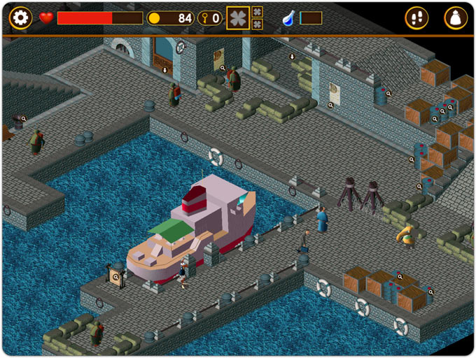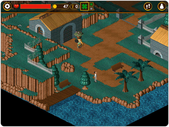 Но самый ад ждет игроков при попытке освоить управление, которое, кстати, было специально адаптировано под сенсорный экран. Помню, как было удобно управляться с Твинсеном при помощи джойстика на PlayStation. Те времена действительно приходится вспоминать с радостью, потому что современная схема просто ужасна. Все передвижения и действия выполняются посредством тапов в необходимой точке экрана. То есть мы указываем персонажу, куда двигаться. Это было бы вполне неплохо, обладай игра хоть какими-то зачатками pathfinding’а. Но Твинсен движется всегда строго по прямой, упираясь в различные объекты и даже не думая сделать шаг в сторону. Мириться с таким издевательством крайне сложно, а привыкать к нему совершенно не хочется.