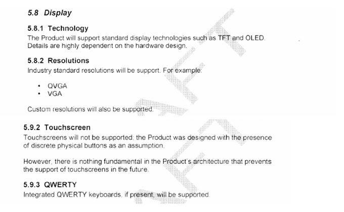 В пункте 5.8-5.9 содержится информация, ставшая чрезвычайно важной для юристов Apple – “Экран”. Вместе с описанием типа матрицы, разрешения и количеством цветов, несколько строк говорится и о сенсорном экране:
