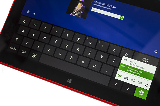 Большой планшетник без физической клавиатуры требует наличия очень качественного, продуманного виртуального варианта. В данном случае Microsoft вновь пошла против «системы», встроив в Windows 8.1 и Windows RT невероятно функциональную клавиатуру. А чтобы пользователи не путались в ней, были реализованы четыре режима использования. На фотографии запечатлен стандартный режим – что-то вроде мобильной клавиатуры, похожей на таковую в iOS. Помимо него, можно запустить режим, делящий клавиатуру на два блока по бокам экрана, что бывает полезно, когда нужно написать что-то на ходу. Третий режим – распознавание письма. Причём русского: вы можете писать слова от руки, и система очень неплохо их понимает и переводит в печатный текст.
