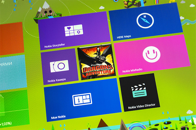 Не могу не вернуться к качествам дисплея. Будучи активным пользователем iPad mini, я уже успел забыть, какими бывают действительно яркие цвета. Экран с разрешением Full HD (1920 на 1080 пикселей), установленный в Lumia 2520, выдает настолько насыщенную картинку, что запечатлеть её на фотографиях, не испортив изначальную гамму, оказалось очень трудно. Чтобы оценить это своими глазами, рекомендуем лично взглянуть на планшетник в ассортименте крупных магазинов страны. В общем, дисплей – сильная сторона Lumia 2520. Да и дизайн тоже.