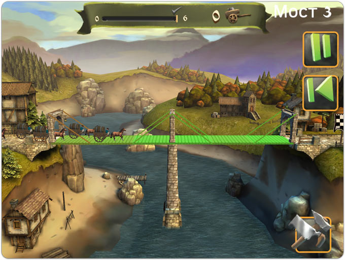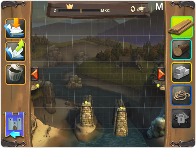 Поскольку действие разворачивается в средневековье, то на стальные мосты, по которым легко прокатится бронетехника, рассчитывать не приходится. В арсенале игрока древесина, камень, и веревки. Комбинируя доступные ресурсы необходимо сооружать весьма прочные мосты. При этом малое число подручных средств отнюдь не облегчают задачу.