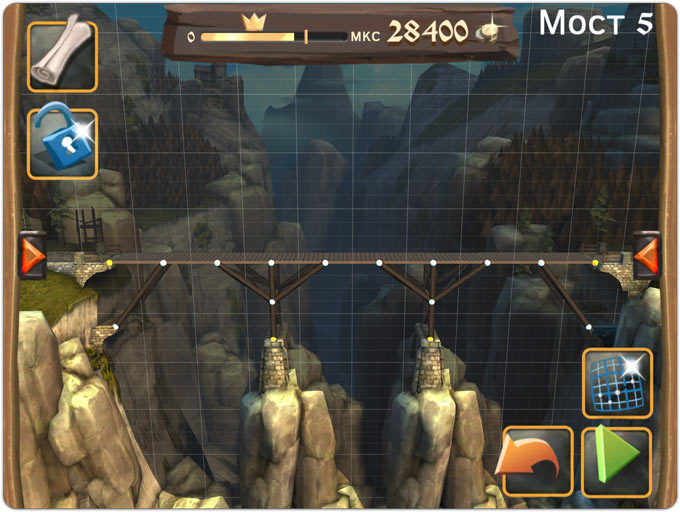 Перед нами несколько уровней, каждый из которых содержит ровно две цели. Первая – построить мост, который сможет переправить людей или груз, а иногда и все вместе на другой берег. Вторая задача – уложиться в определенное число ресурсов, что потребует от игрока серьезных навыков в конструировании. Задача ясна, поэтому не будем откладывать дело в долгий ящик, а примемся за работу.