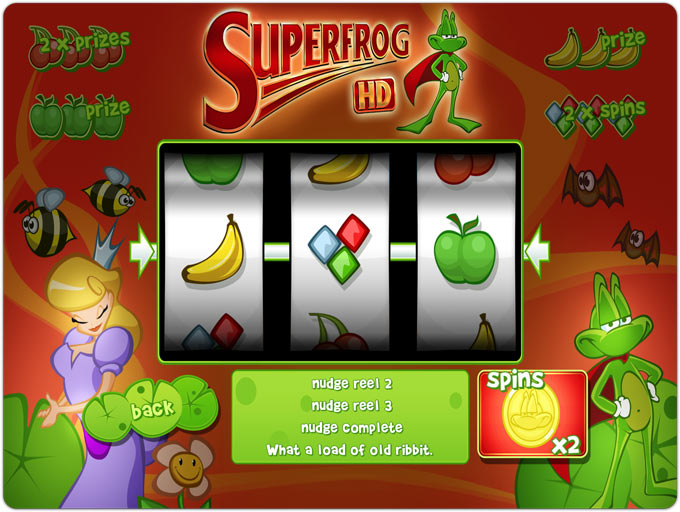 Между уровнями игроку позволят использовать слот-машину, благодаря которой можно выиграть бонусы. Также в главном меню доступны различные лягушачьи испытания, которые позволят игроку оценить собственную ловкость рук. Графика в Superfrog HD была полностью перерисована и выглядит вполне современно. Все происходящее на экране издает определенные звуки, имеется музыка. Визуальная составляющая была обновлена очень достойно.
