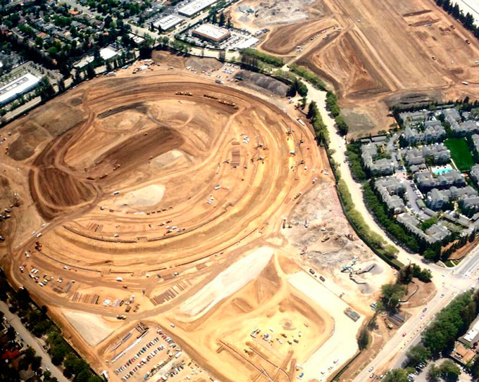 Подготовка к строительству здания новой штаб-квартиры Apple под названием Campus 2 идет полным ходом. Пару недель назад была завершена очистка местности от зданий, которые раньше занимали данную территорию, а теперь пейзаж постепенно принимает облик, подходящий для посадки футуристического космического корабля.