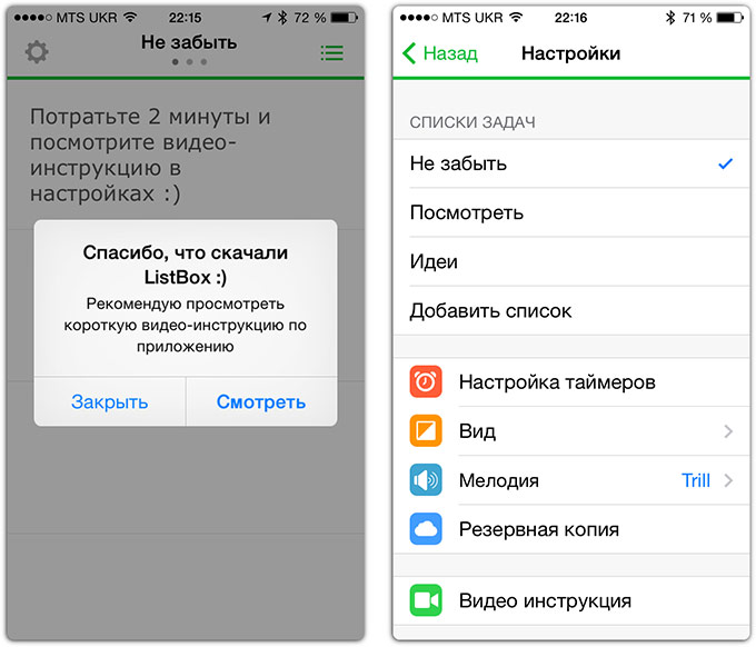 Встречает приложение предложением просмотреть видеоинструкцию и наличие таковой мне очень понравилось. Все особенности работы с ListBox наглядно описаны в 3-минутном ролике и после его просмотра вопросов явно не останется.
