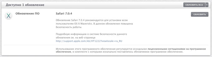 Предыдущий апдейт для браузера от Apple содержал более внушительный список изменений и стал доступен шесть недель назад. Тем не менее, обновление до Safari 7.0.4 и 6.1.4 настоятельно рекомендуется всем пользователям. [Apple]