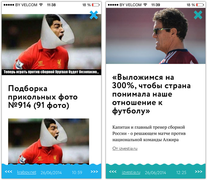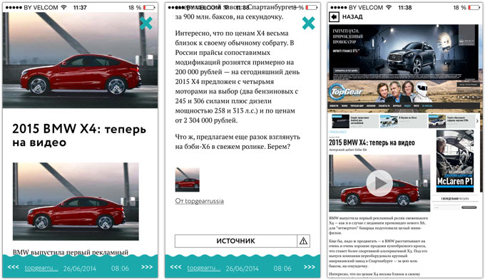 Наконец, фотостена – это набор фотографий с различных ресурсов на злободневные и актуальные темы. Каждая фотография содержит небольшой текстовый комментарий, раскрывающий суть события. Довольно оригинальная находка, которая позволяет открывать для себя информацию по-новому. Сами же новости открываются в отдельном окне. Там может содержаться как весь текст новости, так и ее начало. В любом случае, всегда имеется ссылка на первоисточник, в котором можно прочитать полный текст новости со всеми необходимыми изображениями и видеозаписями. Сайты открываются прямо в РУНДЛ без участия Safari.