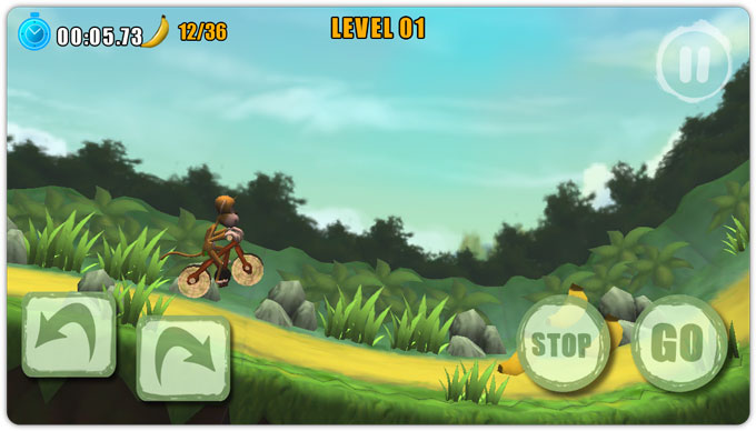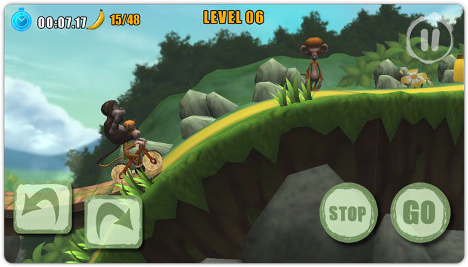 Каждый уровень начинается с обезьяны, которая усиленно крутит педали деревянного! велосипеда, набирая скорость. Кроме кнопки ускорения, присутствует также кнопка торможения и движения назад, а также две кнопки, регулирующие положение велосипеда во время нахождения в воздухе. Вполне традиционное управление не потребует от игрока ломать свои привычки.