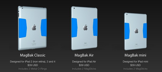 Для заказа доступны три комплекта: классический для iPad 2/3/4 с двумя металлическими кольцами в комплекте, а также два для iPad Air и mini с двумя наборами металлических полос MagStick. Стоимость любого варианта – 39 долларов. Доставка в Россию обойдется ещё в десятку. [1lss]